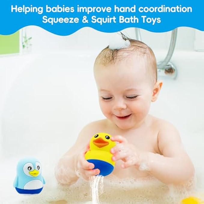 b&h Baby and Toddler Bath Toy, Squeeze and Squirt Durable Silicone Animals Bathtub Toys, Mold Free Bath Toys Set, Safe Baby Bath time Fun