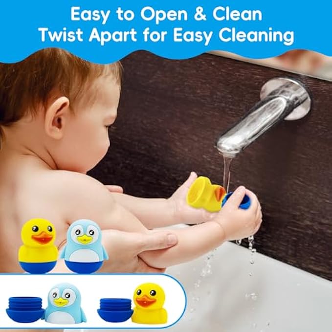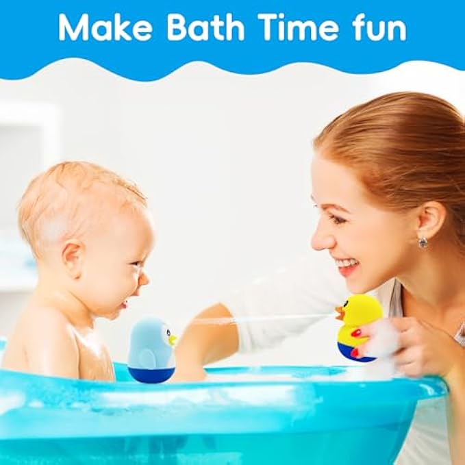 • Make baby enjoy bath! The silicone Duck and Penguin bath toy may be a great way to divert your baby's attention and make them enjoy bathing. Whether bathing or swimming, let your child splash with the silicone Duck and Penguin toys. Help kids understand knowledge of physical buoyancy and develop their hand-eye coordination.