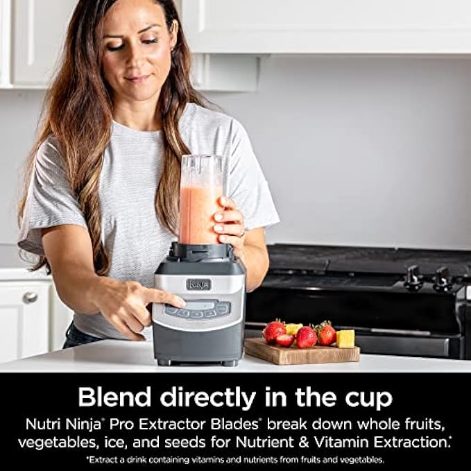 Ninja BL660 Professional Compact Smoothie & Food Processing Blender, 1100-Watts, 3 Functions -for Frozen Drinks, Smoothies, Sauces, & More, 72-oz.* Pitcher, (2) 16-oz. To-Go Cups & Spout Lids, Gray