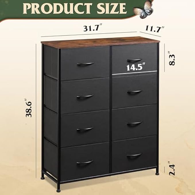• Roomy Storage Space: The dresser for bedroom has 8 deep drawers that are spacious and provide endless organizational possibilities. Wood top is great for placing frequently used items, keeping them in your reach.