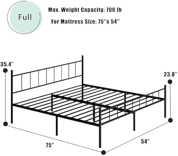 • Size & Weight:Full bed frame size:75"x54"x14", Max weight: 2500Lbs. Stable without shaking and squeaking