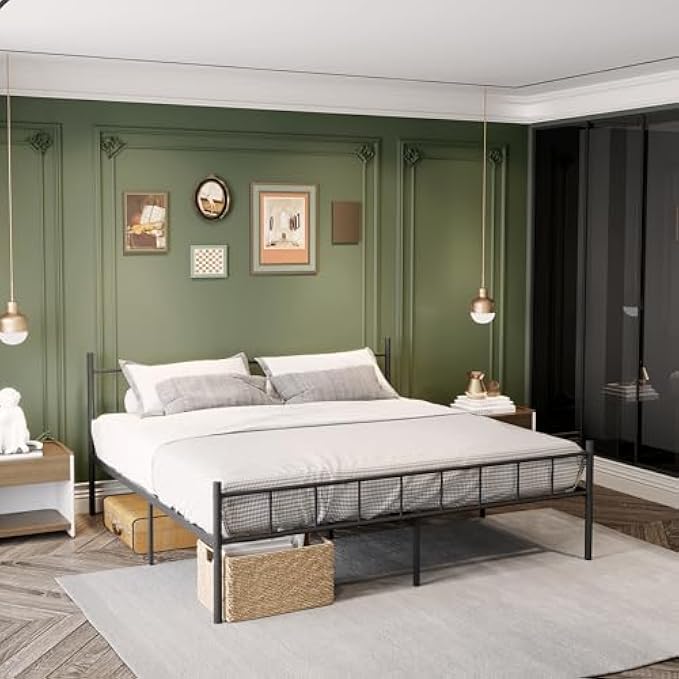Classic Metal Platform Bed Frame,14 Inch Full Size Bed Frame,Storage Space Under Bed Frames, Heavy Duty Steel Slat Support, No Box Spring Needed, Easy Assembly